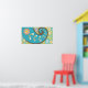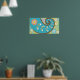 Paisley turquoise rétro avec fleurs poster floral personnalisé avec contour marron.