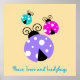 Quelques coccinelles et mignons. Ces coccinelles aux couleurs vives ont de délicieux corps ronds avec de mignons pois blancs à l'arrière. Leurs têtes sont en demi-lune en noir et ont de mignons parfums en forme de boucles. Ces 3 coccinelles sont peintes violet vif, rose et bleu. Le texte dit paix, amour et coccinelle dans une police manuscrite bleu vif. Joli style !