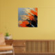 Palm Leaves explores movement and texture through bold, expressive strokes inspired by tropical foliage. Layers of warm orange, sand, and deep black cut through a cool background, creating a dynamic composition that feels energetic, raw, and contemporary.