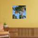 Belle scène de plage tropicale de cocotiers plantés de palmiers contre un ciel bleu clair et lumineux. Idéal pour un événement balnéaire, un luau tropical ou un événement de vacances nature. Des frondes tropicales de palmiers agitent dans la brise le long du rivage d'un paysage de plage côtière. Tous les Designs Copyright © 2012 www.CuteComfy.com Ce design est disponible en collection complète!