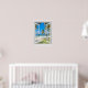 Plage tropicale et palmiers Vue sur l'océan, fausse scène de fenêtre, pour un mur de bureau sans fenêtre. Illusion d'optique réaliste et amusante affiche pittoresque pour un bureau ou un mur d'étude.