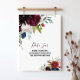Cette pancarte de pot de date florale marine Bourgogne moderne est parfaite pour un mariage simple. Le design présente des fleurs peintes à la main en rouge, bourgogne, marine, violet, bleu et rose et des feuilles vertes. Les cartes d'idées de soirée en amoureux sont vendues séparément.