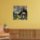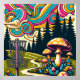 Poster Panier de golf à disque psychédélique et champigno