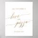 Poster Panneau Amour et Pizza en Calligraphie Dorée Éléga