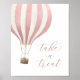 Invitations amis et famille pour un régal avec cette enseigne de table, avec une montgolfière rose et une élégante typographie or.