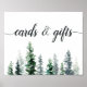 Conçu pour correspondre à notre collection de mariages Timber Grove, cet élégant panneau chic bois dirige les invités vers votre carte ou table cadeau. Caractéristiques "cartes & cadeaux" en calligraphie non-noire lettrage avec une bordure inférieure de pins aquarelles rustiques dans les tons de chasseur et vert de la forêt.
