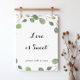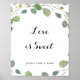 Ce panneau d'amour de calligraphie d'eucalyptus de verdure est parfait pour un mariage rustique ou une douche de mariée. Le design présente des branches et des feuilles d'eucalyptus vert botanique dessinées à la main.