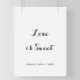 Ce panneau d'amour de calligraphie moderne Love Is Sweet est parfait pour un mariage rustique ou une douche de mariée. Le design simple et élégant présente une typographie de script classique et élégante en noir et blanc.