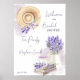 Modèle de panneau de bienvenue pour fête de mariage thème thé à la lavande avec une tasse de thé. Lavandes aquarelles, livres, tasse de thé et chapeau, fête romantique.