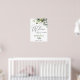 Accueillez vos invités à votre mariage avec l'Affiche de bienvenue pour une baby shower aux roses blanches et à la verdure florale, avec une verdure botanique luxuriante aquarelle et des fleurs blanches, avec "bienvenue dans notre bonheur éternel", vos noms et la date du mariage dans un mélange chic de typographies modernes et de calligraphie manuscrite.