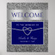 Accueillez vos invités avec style grâce à notre élégante affiche de bienvenue de mariage moderne calligraphiée argentée pailletée et bleue royale, qui présente un motif de cœur en corde simple mais charmant. Cette pièce époustouflante donne le ton pour votre jour spécial avec son design sophistiqué et ses détails luxueux. Les paillettes argentées scintillantes ajoutent une touche de glamour, tandis que la teinte bleue royale dégage une élégance royale. Avec sa combinaison de calligraphie moderne et d'éléments de design intemporels, cette affiche de bienvenue promet de faire une déclaration mémorable, en veillant à ce que vos invités se sentent vraiment les bienvenus à votre célébration d'amour.