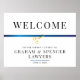 Panneau de bienvenue moderne et élégant pour la grande ouverture avec une paire de ciseaux dorés coupant un ruban bleu, parfait pour les événements d'entreprise, les présentations de produits, les nouvelles entreprises et les occasions similaires.