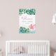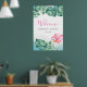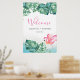 Le panneau de bienvenue pour réception de mariage tropical aquarelle a été conçu pour correspondre à ma collection de papeterie de Floride. Ce panneau de style lettrage main chic tropical informe les invités qu'ils sont arrivés à votre réception de mariage. Le design utilise une réplique de mes feuilles de palmier monstera aquarelle originales et un flamant rose avec un rivage océanique. Personnalisez avec un texte personnalisé en typographie de lettrage main script calligraphie (illustré avec "Bienvenue") dans une couleur rose vif. Parfait pour les réceptions de mariage, les douches de mariée, les simples douches de bébé, les fêtes d'anniversaire, les 50èmes anniversaires de mariage et les douches de couples. Pour voir la décoration de mariage tropical moderne et les papiers, visitez www.zazzle.com/dotellabelle