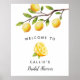 Panneau de bienvenue pour une douche de mariage rustique avec une illustration aquarelle de citrons sur une branche d'arbre.