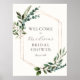 Accueillez vos invités à votre douche avec ce magnifique poster, doté d'un cadre doré avec des brins de verdure. Ajoutez le nom de l'invitée d'honneur, la date de la douche et le texte de bienvenue personnalisé en utilisant les champs fournis.