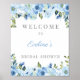 Panneau de bienvenue pour une douche de mariée florale bleu poussiéreux argenté 8x10 poster,