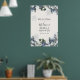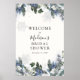 Accueillez vos invités à votre douche nuptiale avec cette superbe affiche, dotée d'une bordure de verdure persistante, de branches de sapin, de baies bleues hivernales et de flocons de neige. Ajoutez le nom de la mariée, la date de la douche et le texte d'accueil personnalisé en utilisant les champs fournis.