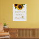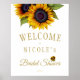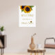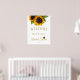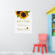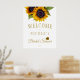 Modèle de panneau de bienvenue élégant et floral pour une fête de mariage moderne avec un grand bouquet de tournesols jaunes dorés et une typographie script dorée chic. +++++++++++++++ Facile à personnaliser avec vos détails !