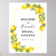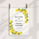 Accueillez vos invités à votre fête de mariage avec ce beau poster, doté d'un cadre jaune entouré de branches de verdure avec des citrons. Ajoutez le nom de l'invitée d'honneur, la date de la fête et le texte de bienvenue personnalisé en utilisant les champs fournis.