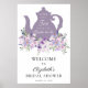 Accueillez vos invités à votre fête de mariage avec ce magnifique poster, mettant en vedette une théière lavande violette avec des fleurs violettes et roses et de la verdure. Ajoutez le nom de l'invité d'honneur, la date de la fête et le texte de bienvenue personnalisé à l'aide des champs fournis.