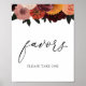 Panneau de cadeaux avec une illustration de fleurs et de verdure de couleur Bourgogne, rose et orange avec le mot "cadeaux" dans un script de calligraphie amusant.