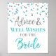 Conseils et vœux de bonheur pour le panneau de la mariée pour la douche de mariage dans un motif de confettis argent et bleu clair. Veuillez noter que l'effet paillettes est uniquement un effet photographique.