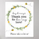 Panneau de faveur avec une couronne aquarelle de verdure et de fleurs jaunes avec des abeilles qui bourdonnent et les mots "Hey Honey, merci d'être là" dans un script amusant.