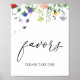 Panneau de faveurs présentant une illustration de fleurs sauvages, de verdure et d'abeilles bourdonnantes avec le mot "faveurs" dans un script de calligraphie amusant.
