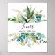 Ce panneau de faveurs fleuris dorés avec feuillage tropical est parfait pour un mariage moderne ou une baby shower. Le design présente principalement un feuillage vert aquarellé peint à la main associé à des fleurs dorées, ornant un cadre géométrique élégant.
