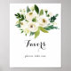 Ce panneau de faveurs florales blanches de verdure est parfait pour un mariage rustique ou une baby shower. Le design présente d'élégantes pivoines blanches à l'aquarelle avec un feuillage vert.