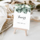Ce panneau de faveurs florales blanches de verdure tropicale est parfait pour un mariage rustique ou une baby shower. Le design présente des bouquets de feuilles de palmier vertes avec de jolies fleurs blanches.