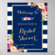 Poster Panneau de Fête de Fiançailles à Rayures Bleu Mari