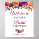 Panneau d'Affiche de Fête de Mariage Floral Bourgeons Rustique Bourgogne.