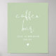 le modèle de panneau du bar à café imprimable présente un design minimaliste moderne et une formulation entièrement modifiable avec une combinaison de couleurs pastel vert et blanc éclatante. Utilisez ce panneau pour votre réception de mariage, douche nuptiale, fête de retraite, etc. Modifiez le libellé *le plus* pour répondre à vos besoins.