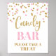 Panneau de candy bar pour baby shower, bridal shower, ou mariage dans un motif de confettis rose clair et or avec lettrage de style manuscrit. Parfait pour une baby shower, un mariage ou une bridal shower.