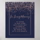 Panneau de mariage commémoratif bleu marine confettis or rose, en souvenir aimant de.