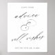 Un panneau simple et élégant à placer pour demander aux invités de laisser leurs conseils et vœux aux jeunes mariés. Idéal pour remplacer le livre d'or lors de votre réception de mariage ou une activité amusante lors d'une fête de douche nuptiale. Caractérisé par un script de calligraphie simple et chic.