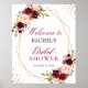 Ce panneau de bienvenue pour une douche de mariage floral rouge Bourgogne est un ajout magnifique et élégant à votre douche de mariage. Ce panneau présente un magnifique motif floral dans une riche palette de couleurs rouge Bourgogne et or. Le cadre géométrique donne au panneau un aspect moderne et sophistiqué. Le panneau est parfait pour accueillir les invités à la douche et définir le ton de l'événement. Pour afficher ce poster, vous pouvez le monter sur un panneau de mousse ou un panneau de bois pour l'afficher sur un chevalet ou l'accrocher au mur. Et pour votre commodité, il est également disponible en téléchargement numérique pour une impression personnelle.