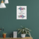 Affiche / bannière de bienvenue pour la douche de mariée avec des fleurs de jardin violettes prune, roses et bleues sur fond blanc