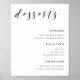 Panneau d'affiche de menu de desserts de mariage sur mesure avec un design moderne en noir et blanc.