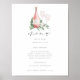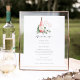 Un charmant panneau de menu botanique affiche vos sélections de nourriture surmontées d'une bouteille de vin rosé avec les initiales du couple inscrites, et deux verres à vin sur un lit de feuilles d'eucalyptus et de feuillage à l'aquarelle verte. Conçu pour correspondre à notre collection d'invitations Cheers to Love.