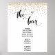 Les pièces de cette collection présentent des phrases proéminentes rendues dans une police distinctive et élégante accentuée de cœurs, ainsi que de faux confettis dorés. Dans ce panneau de menu, le texte manuscrit est «the bar». Utilisez les champs de modèle pour ajouter vos informations et rendre ce panneau de réception unique. // 80 //