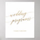 Ce panneau de programmes de calligraphie dorée élégante est parfait pour un mariage simple. Le design neutre présente une affiche minimaliste décorée d'une typographie romantique et fantaisiste en faux feuillet doré.
