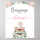 Ce panneau de mariage adorable présente des valises et un globe avec des fleurs aquarelles roses et des confettis en feuille d'or faux.