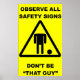 Observez tous les panneaux de sécurité, ne soyez pas "ce type"