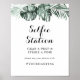 Ce panneau de station de selfie à la flore blanche de verdure tropicale est parfait pour un mariage rustique ou une douche de mariée. Le design présente des bouquets de feuilles de palmier vertes avec de jolies fleurs blanches.