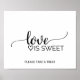 Ce panneau d'écriture calligraphique noire simple "l'amour est doux" est parfait pour un mariage rustique ou moderne. Le design minimaliste présente une police de caractères à pinceau élégante et un cœur féminin charmant.