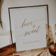 Ce panneau élégant en calligraphie dorée "l'amour est doux" est parfait pour un mariage simple. Le design neutre présente une affiche minimaliste décorée d'une typographie romantique et fantaisiste en faux feuillet d'or.