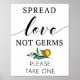 Panneau étaler l'amour pas les germes pour mariages, fêtes, douches de mariée, douches de bébé ainsi que pour restaurant, bureau, café, salon...