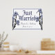 Panneau Juste Mariés avec de beaux iris bleus. Personnalisez avec les noms et la date.